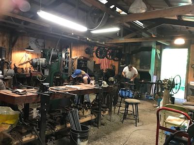 in the blacksmith shop.