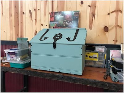 While many old tool chests resemble basic box-like chests, the Slant Lid with a fall front variety is an attractive alternative that